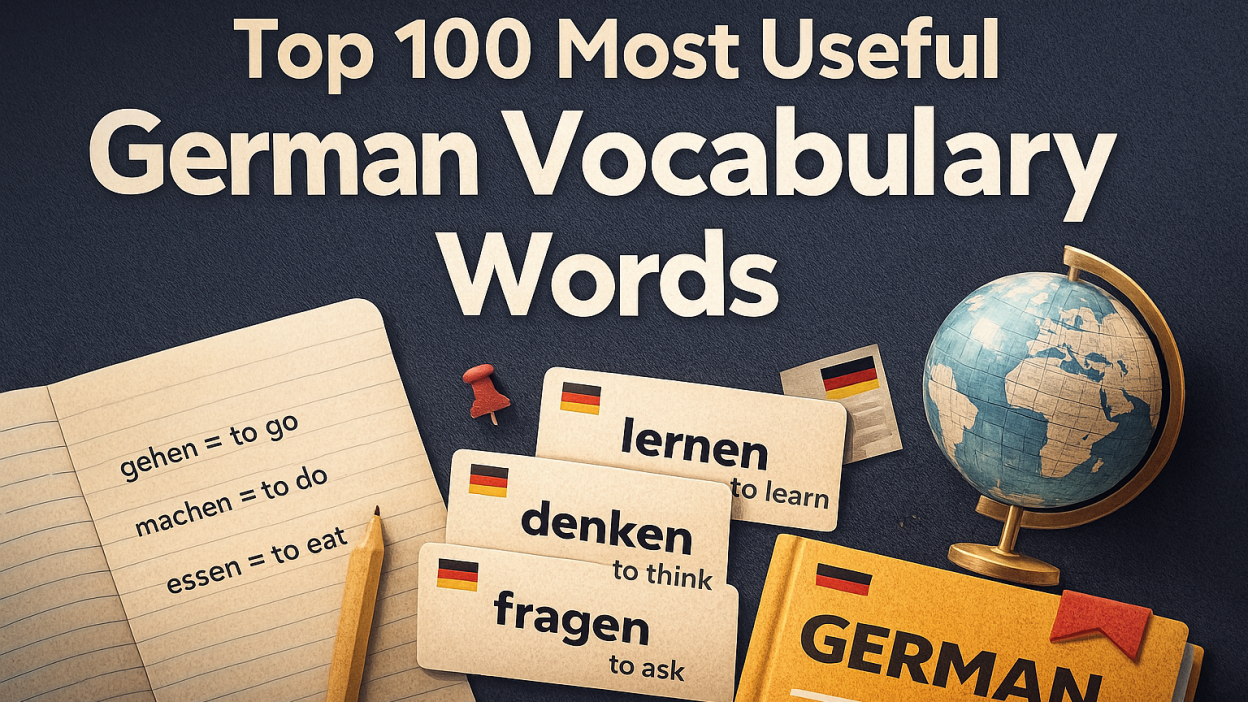 Instead of memorizing random vocabulary, focus on the verbs you’ll actually use. This list of the Top 100 common German verbs includes clear example sentences and English translations so you can understand and use them immediately — even as a complete beginner.